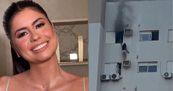 Ela se pendurou em um suporte de ar-condicionado, do lado de fora no 13º andar de um prédio, cujo apartamento